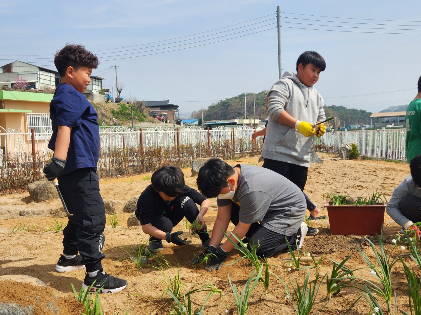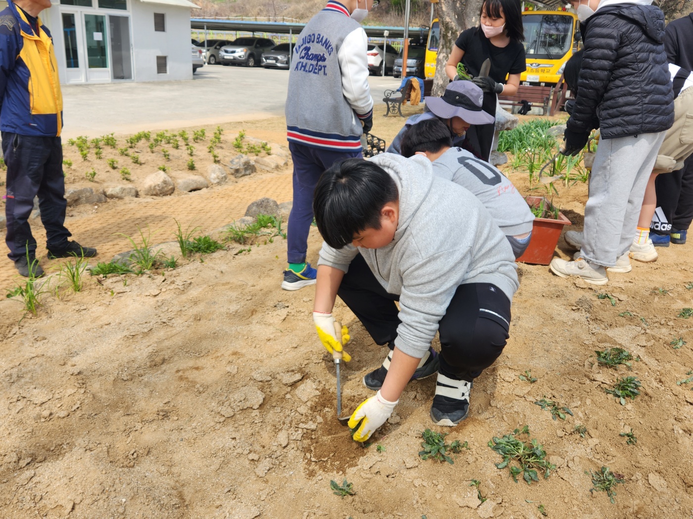 창녕행복지구 마을교육과정 프로그램 운영으로 3,4학년 학생들이 꽃모종 심기를 했습니다