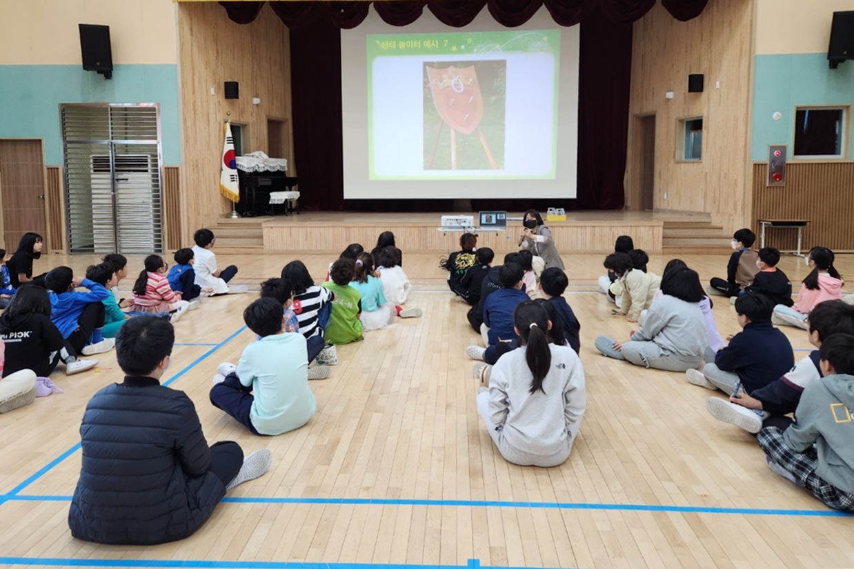 전교생이 생태놀이터 만들기 사전수업을 실시했습니다.
