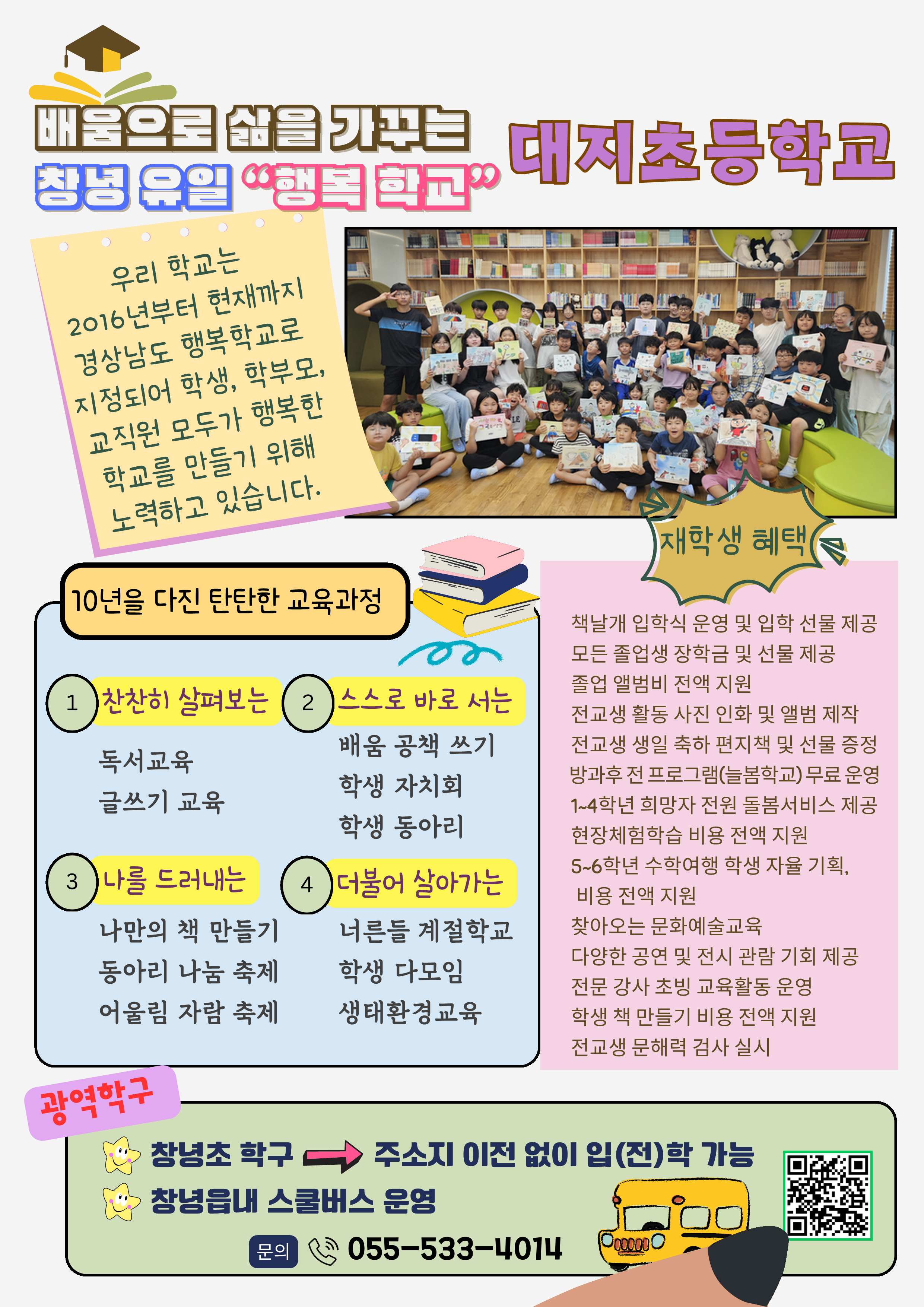 기존에 운영되던 우리 학교 통학 구역에 창녕초등학교 통학구역이 추가되어, 창녕초 통학구역에 거주하는 학생도 우리 학교로 전입, 입학이 가능합니다.